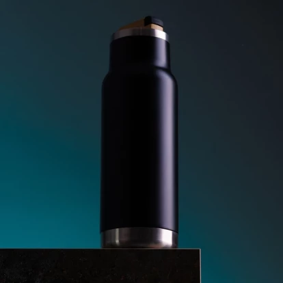 Posiada stylowy silikonowy uchwyt wysuwany z nakrętki. Utrzymuje temperaturę powyżej 40°C przez 16 godzin.