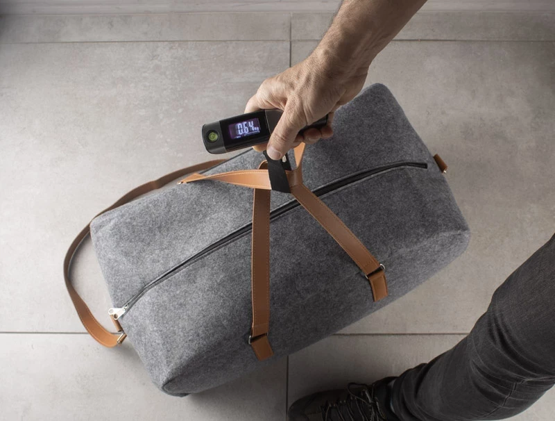 Ekran LED - waga w 3 jednostkach: Oz, Lb, Kg.Funkcja tary, wskaźnik naładowania baterii, alarm przy przekroczeniu wagi walizki(20kg),skala 0-20 kg,interwał co 2 kg.Obciążenie max.50 kg.Produkt posiada miarę o długości 1 metra oraz poziomnice.